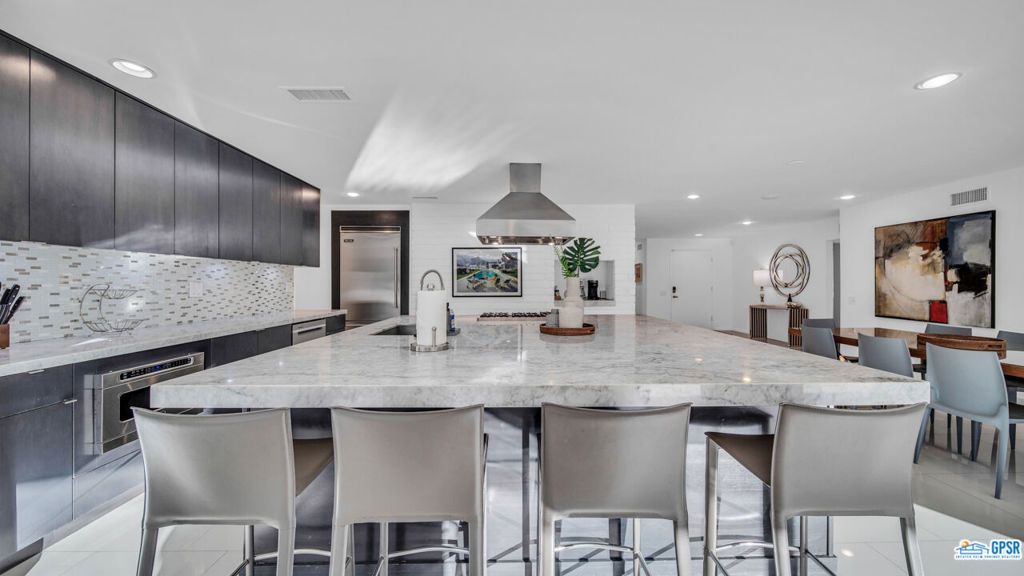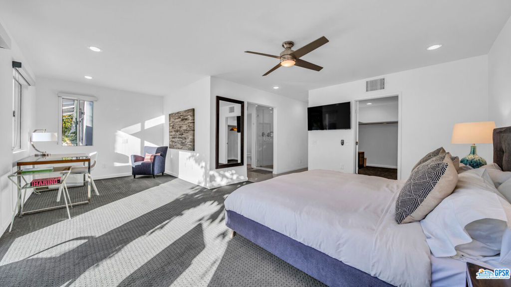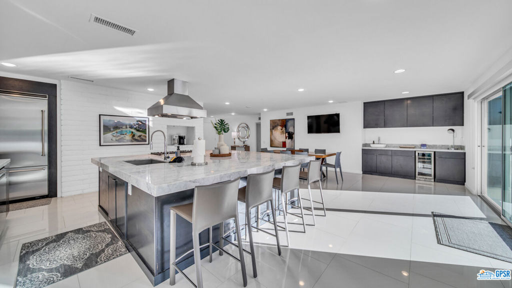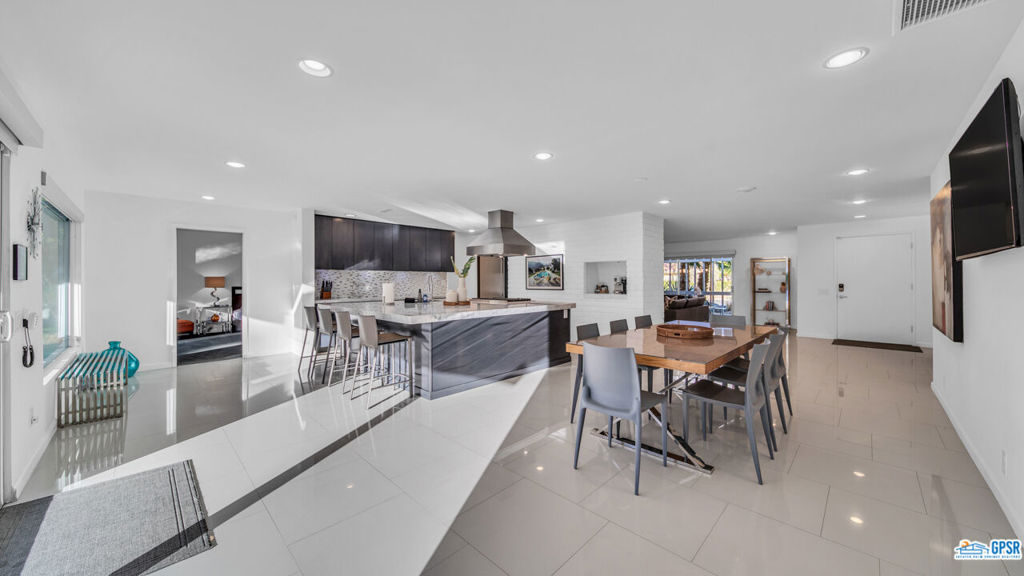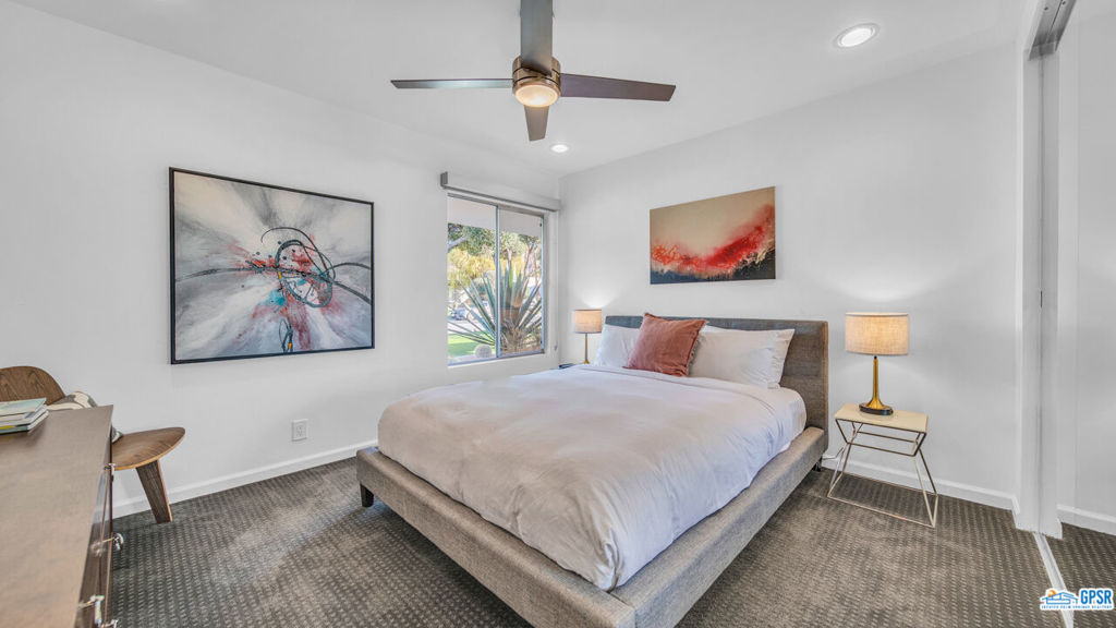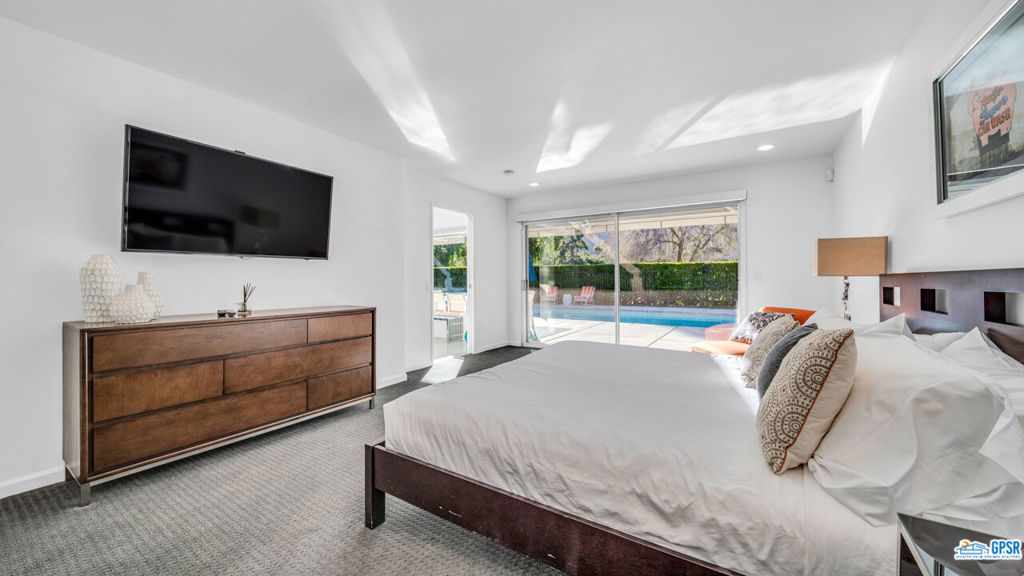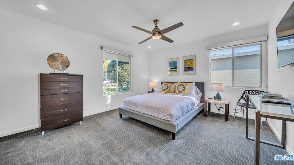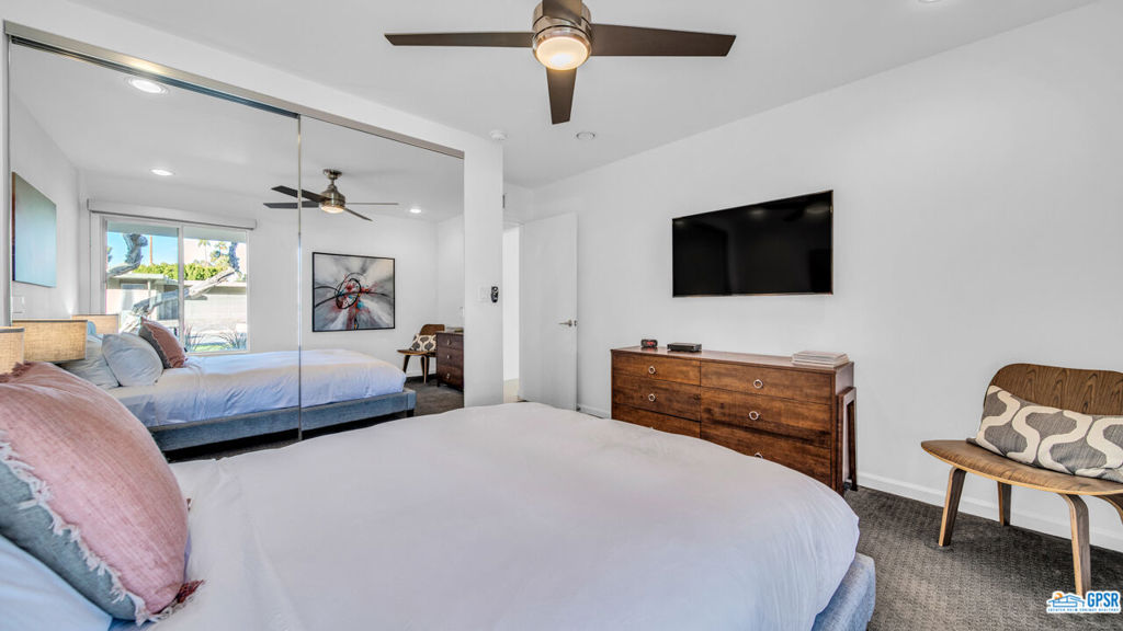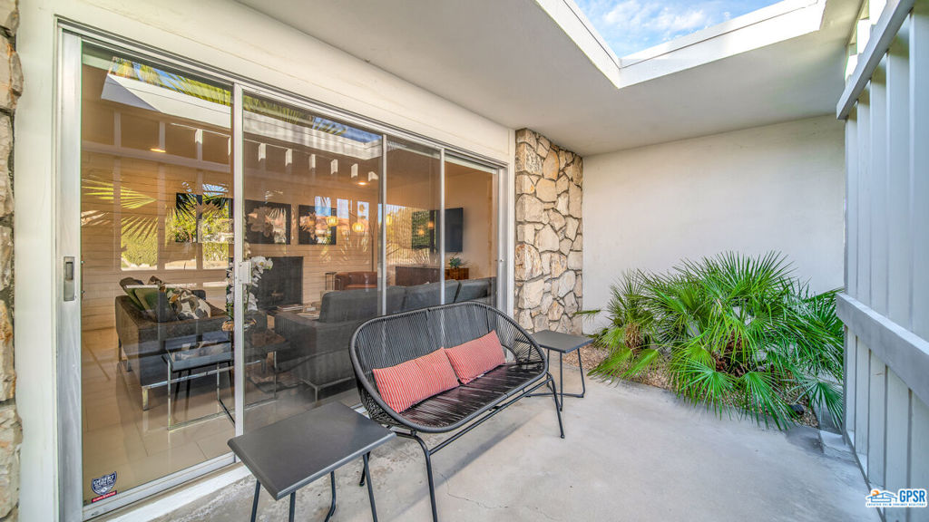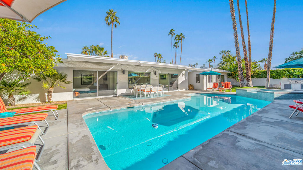 Built in 1963, this classic mid-century modern property was one of the original homes in Harry Kelso's visionary Canyon Country Club Estates, now known as Indian Canyons. Re-imagined for today's living, the open, flowing spaces enjoy spectacular views of the San Jacinto mountains from virtually every room. Clean architectural lines, period details and modern finishes and appliances blend seamlessly in the spacious 4 bedroom, 3 bath floorplan (with dual primary suites). Sited on the 6th fairway of the north course, the resort-like grounds feature a new spa and rebuilt salt water pool, hedged for privacy and gently shaded by motorized awnings. Near golf, hiking, restaurants, and downtown Palm Springs, this is a very special desert retreat.