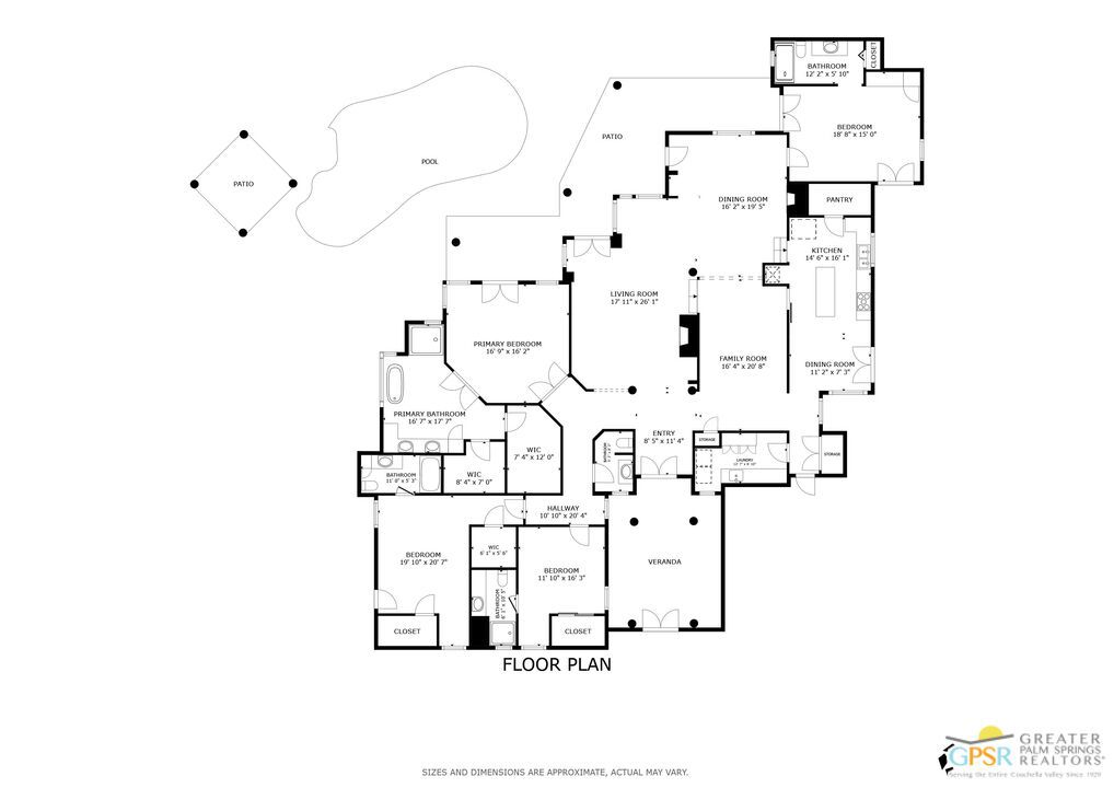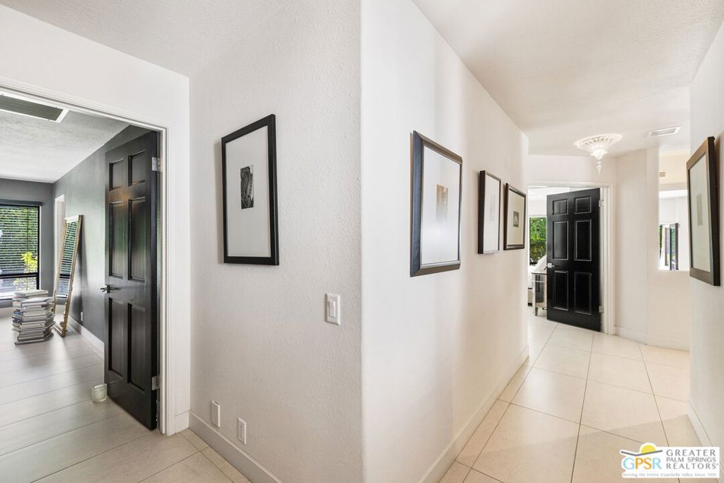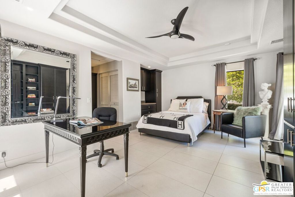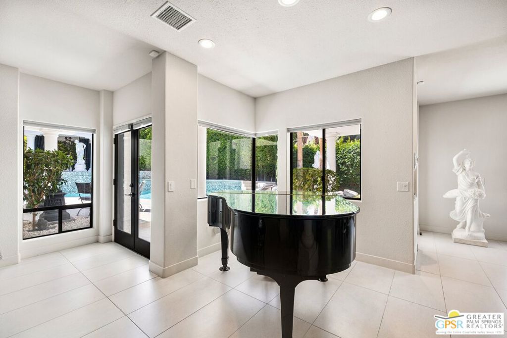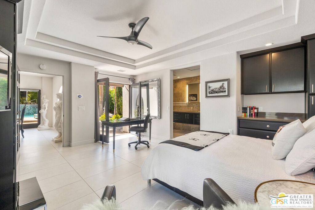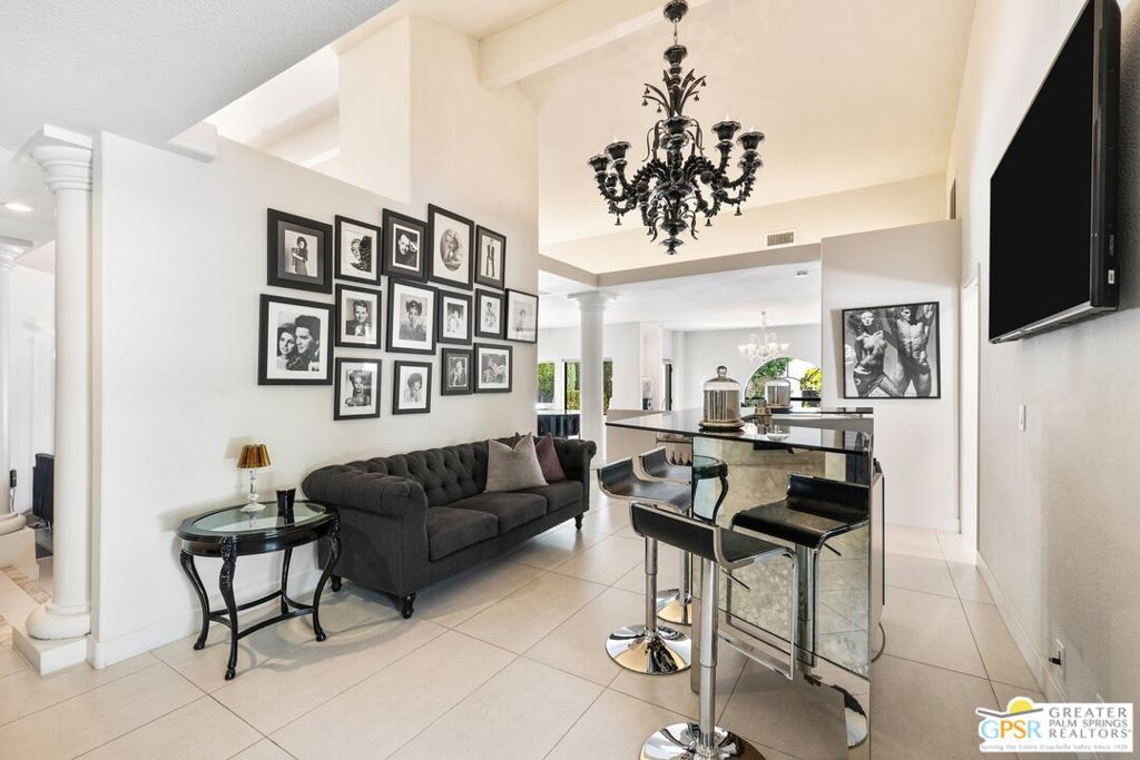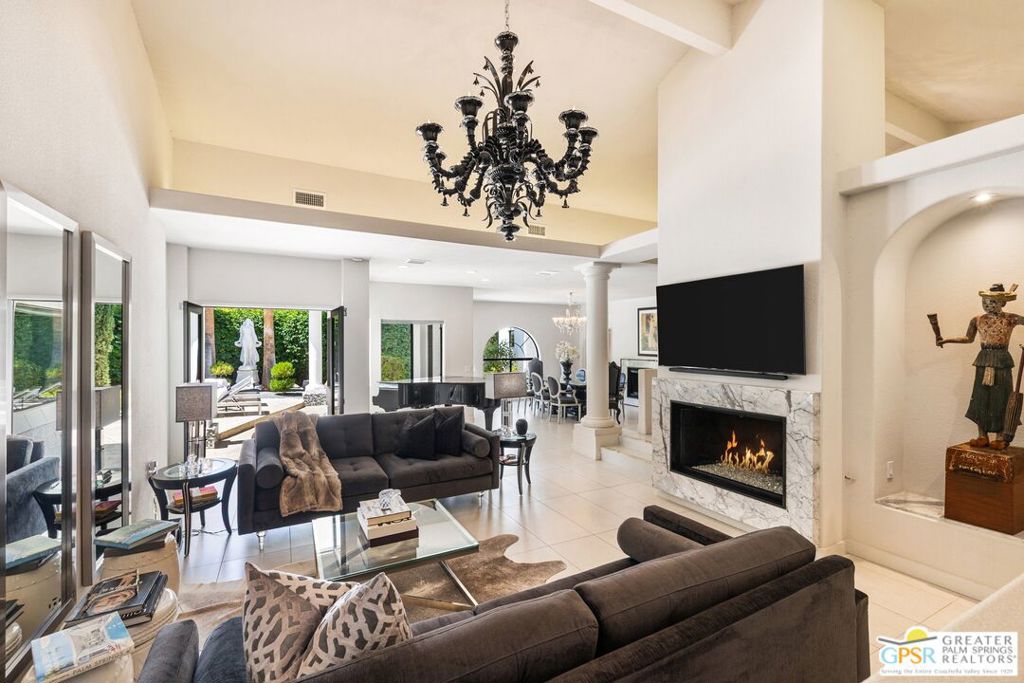 A Magical Setting in The Mesa! Perfectly positioned in one of South Palm Springs' most cherished and storied neighborhoods, this elegant 4 BED, 4.5 BATH residence offers a seamless blend of style, comfort, and desert sophistication. Set on land you own (Fee Simple) with OWNED SOLAR, the property features a circular driveway leading to a beautifully appointed 4 bedroom ensuite home. Designed for both everyday luxury and entertaining, the residence wraps around a stunning pool and spa with waterfall, dramatic mosaic tile accents, an elevated gazebo framed by mountain views and swaying palms. Multiple outdoor conversation areas enhance this ultra-private setting. The gated courtyard entry and double doors open to formal living and dining spaces with dual fireplaces and a custom bar area, also ideal as a destination-style media lounge. Notable lighting throughout includes Baccarat fixtures that complement the home's subtle nod to Hollywood Regency design. The chef's kitchen features high-end finishes, a generous buffet, walk-in pantry, and breakfast area with patio access. The spacious primary retreat offers direct pool access, a Carrara marble-lined shower, and a freestanding clawfoot tub. Two additional guest suites are thoughtfully positioned along the west wing, each with private full baths. The attached casita, located in the east wing, features two sets of French doors that open to the outdoors and floor-to-ceiling built-in bookcases. This generous space functions beautifully as a second primary suite or private retreat.Additional highlights include a large utility room, direct garage access, and a secondary entrance off Carmelita Street, perfect for pool guests or staff. Take the Matterport Virtual Tour to experience the flow and finish of this exceptional South Palm Springs property.