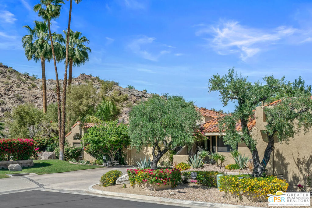 Palm Springs condo, large private yard area, and attached private 2 car garage. Inside: 2 bedroom 2 bath, . This unit is situated on a cul-de-sac with views, privacy, and fantastic outdoor entertainment areas.